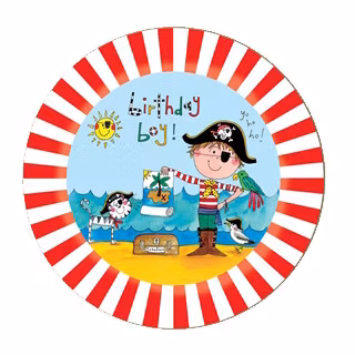 Birthday Boy, 8 st tallrikar 39 kr 10 kr I lager. Lägg i korgen Beskrivning Papperstsllrikar till piratkalaset. Diameter: ca 23 cm Material: papp Antal: ca 8 st Färg: flerfärgstryck