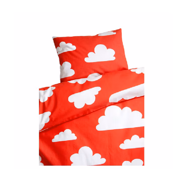 Färg & Form, Moln Bäddset Spjälsäng Röd 399 kr 149 kr Produkten är tyvärr slut i lager. :( Beskrivning .Bäddset Röd Moln till spjälsäng skapat av Gunila Axén.Påslakan: 100x130 cm, örngott: 40x55 cmTillverkad av 100% bomull.